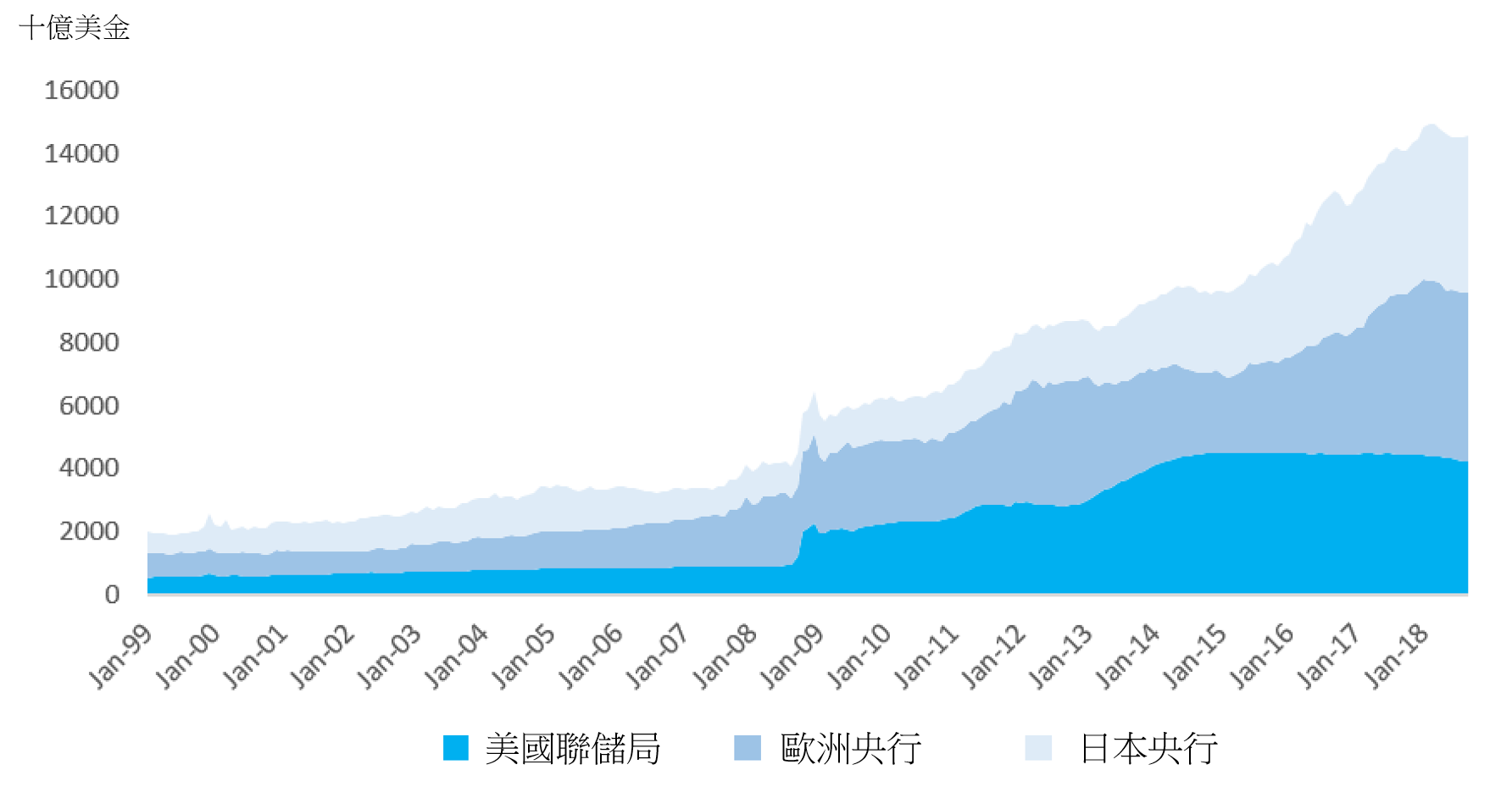 圖三:美聯儲、歐洲央行、日本央行資產變化
