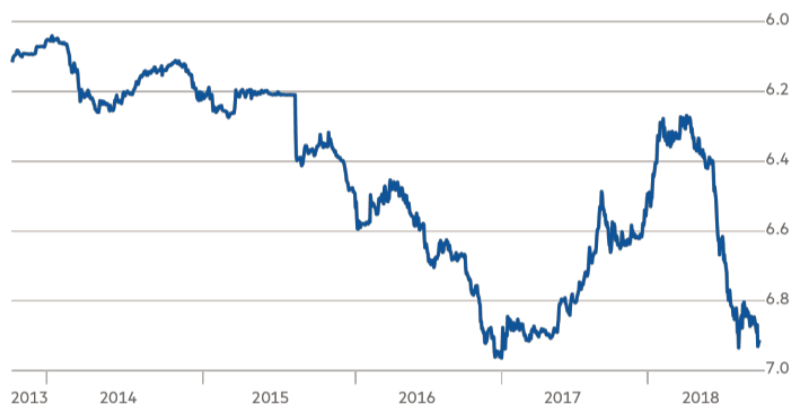 人民幣兌美元匯率(每美元兌人民幣)