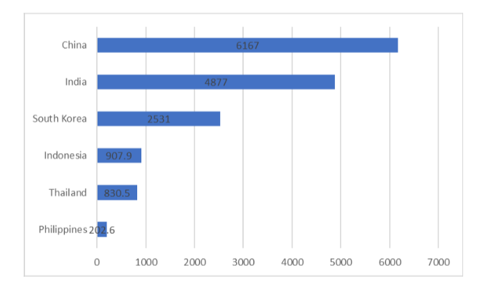圖表2亞洲國家的石油進口量(mbpd)