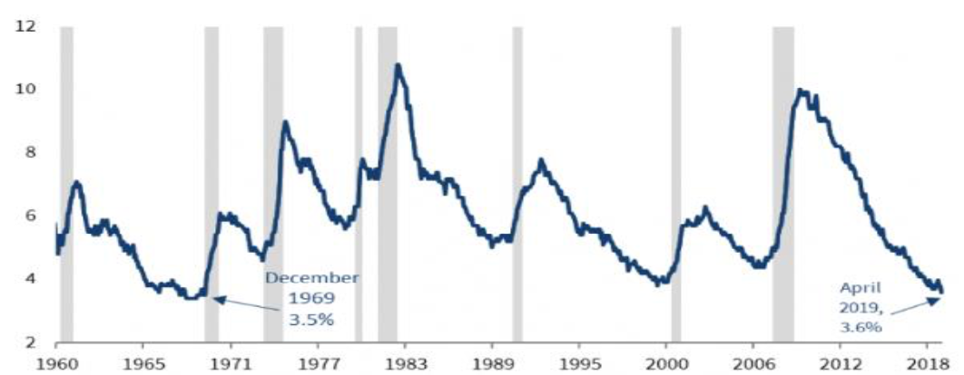 今年 4月,美國經濟錄得 263,000 份新增就業人口,失業率更下跌至3.6%,為 1969年以來的最低水平,大幅優於市場預測。