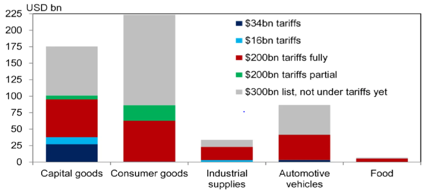 首兩份清單主要針對非消費者產品,如工業產品、醫療產品和運輸產品。至於對第 3 份清單上的產品加徵關稅,則會造成更嚴重的後果,其中 40% 的產品屬於消費者商品,例如傢俬、電器設備和服裝。事實上,很多清單上的商品都是在中國製造的外銷商品。因此,這將會對全球供應鏈和消費者造成更大的衝擊。